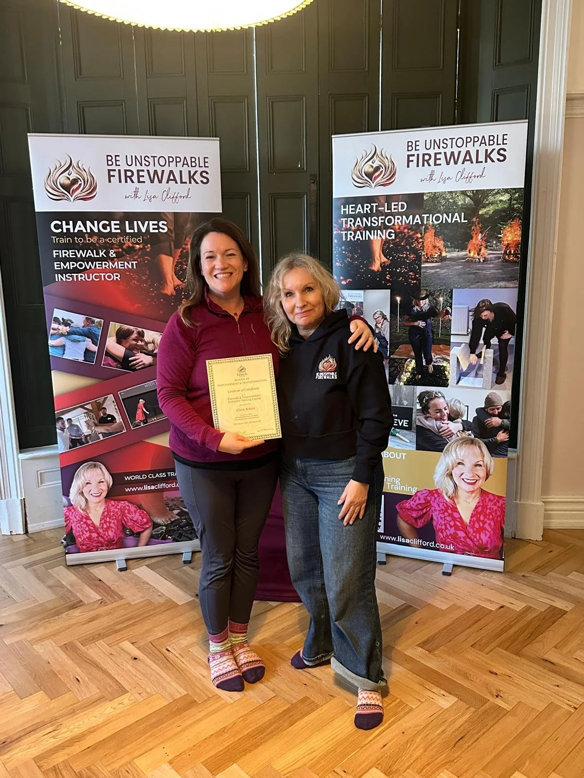 I heard a very quiet voice inside say: that’s it. That is your path. Go and train to become a firewalking instructor.