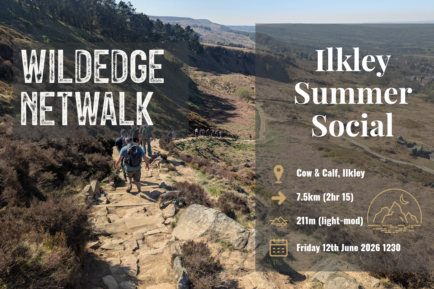Get ready for the WildEdge Worx Summer Social Netwalk, as we head to oue favourite local haunt, Ilkley Moor, for an afternoon of exploring the moor, followed by drinks in the stunningly-located Cow and Calf pub.